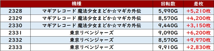 まずは「マギレコ~東京リベンジャーズ 2328~2333」が目を見張る活躍ぶりに!