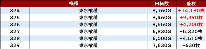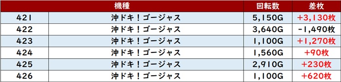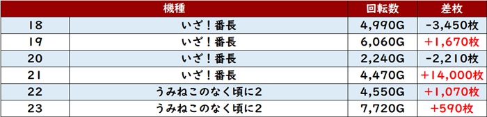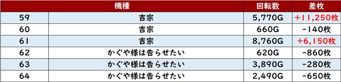 差枚数+9,100枚超えを2台から確認でき、絶好調な様子だった。