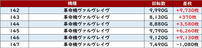 また「ヴヴヴ 142~147」が全台回転数7,400G超えとこちらもかなりの高稼働で活気付く!