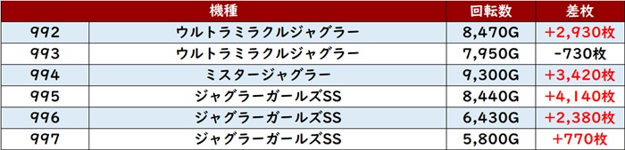 また20スロ全511台の平均差枚数+300枚と全体的に盛況であった様子が窺えた!