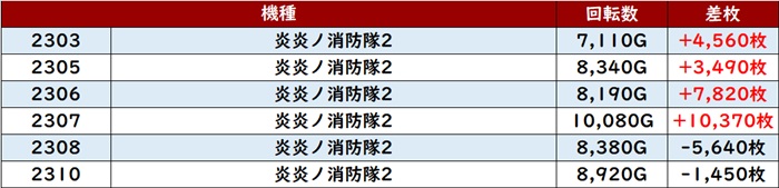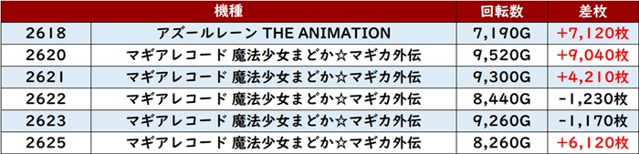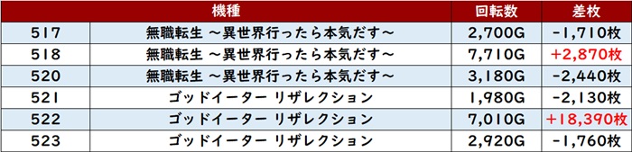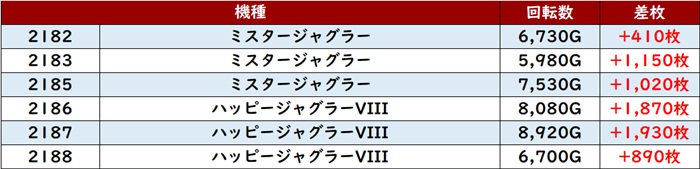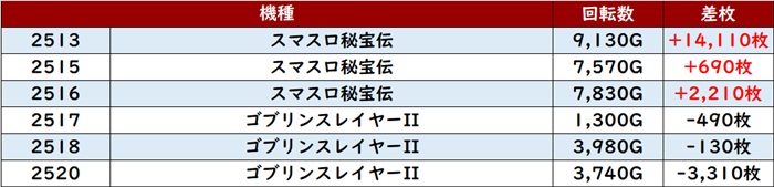 こちらも6台中5台がプラス差枚となり、稼働がしっかり付いている台が着実に出玉感を伸ばしていた。