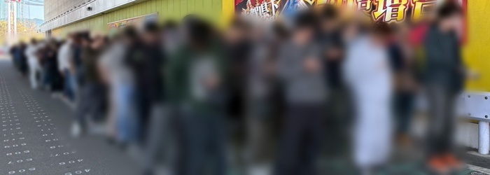 朝イチは「北斗転生2」「スマスロ北斗「虚構推理」「真打吉宗」「ヨルムンガンド」「スマスロ化物語」「炎炎2」「カバネリ海門決戦」と新台含め多くの機種が満台となった。