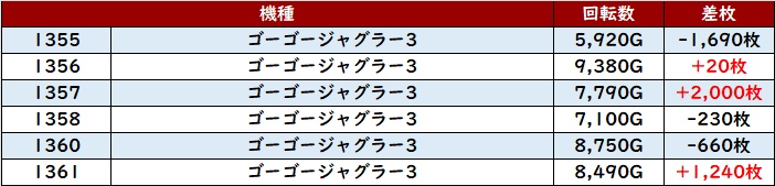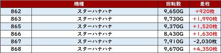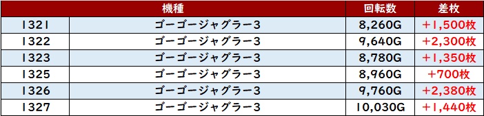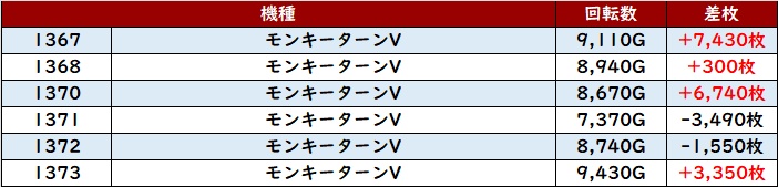 全台回転数8,100G超えとしっかり打ち込まれており、その結果半数が差枚数+4,000枚超えの圧巻の出玉感に結びついた!