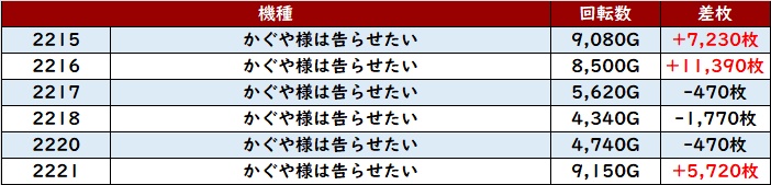 続いて「かぐや様 2215~2221」も状況の良さを感じる結果に!