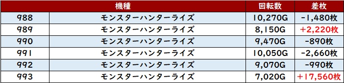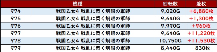 更に「乙女4 974~979」の殆どが回転数9,000G超えの高稼働に!