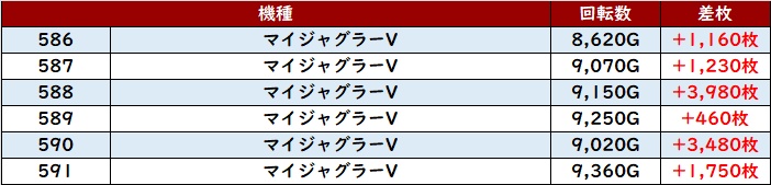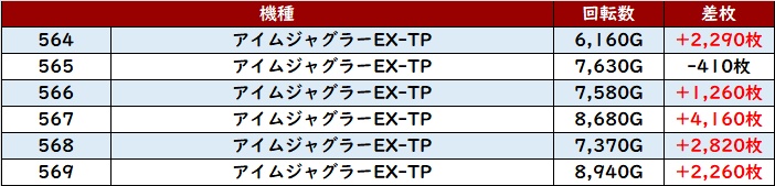 続いて「アイムEX-TP 564~569」「マイジャグ5 586~591」が大盛況!