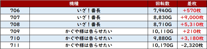 今回は「ジャグラーシリーズ」「いざ番~かぐや様」など状況が良さそうな箇所を確認!