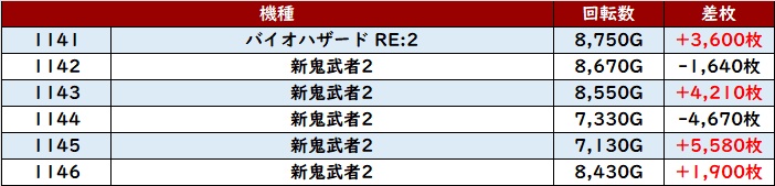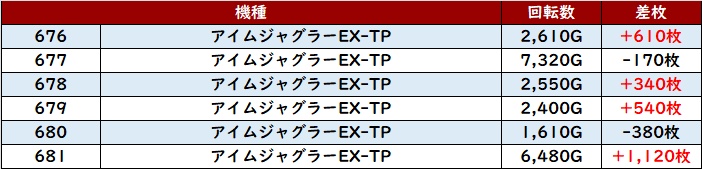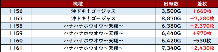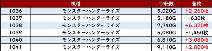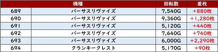 半数が回転数9,200G超えとぶん回された結果、全台大幅プラス差枚と好調ぶりをアピールしていた。