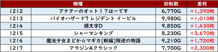 続いて「はーです~アラジンクラシック 1212~1217」が優秀な稼働状況に!
