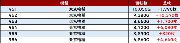 まずは「東京喰種 951~956」が圧巻の出玉感・稼働状況で主役の座を射止めた!
