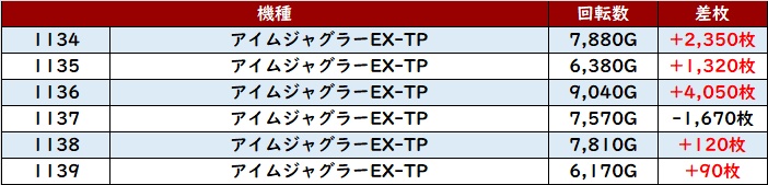 ・1台あたりの平均差枚数:+2,110枚