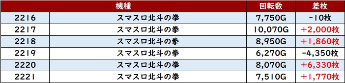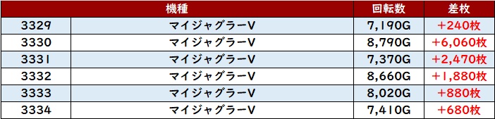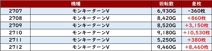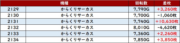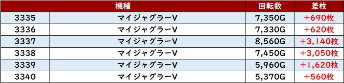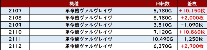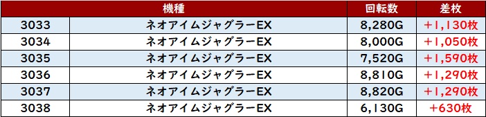 中には回転数10,160Gに到達する台も見受けられ、差枚数+4,200枚超えが4台となるなど驚愕の光景に!