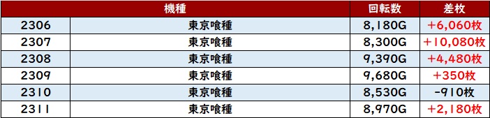 続いて「東京喰種 2306~2311」も凄まじい数値で、盛り上がりに大きく貢献!