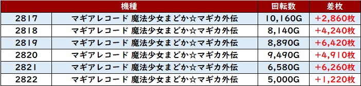 まずは「マギレコ 2817~2822」が全台プラス差枚で熱狂ぶりをアピールした!