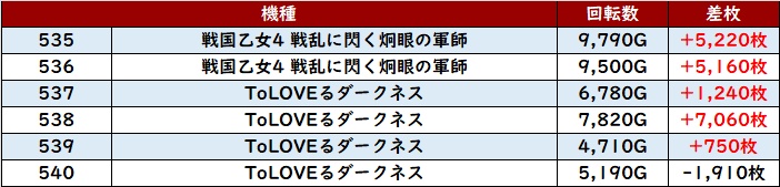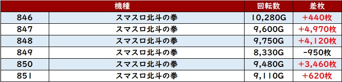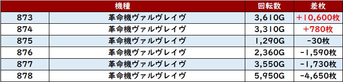 その稼働の高さも相まり、差枚数+1.3万枚超えを筆頭に半数が差枚数+8,200枚超えという凄まじい出玉感を叩き出した!