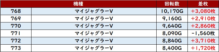 続いて「マイジャグ5 768~773」がポテンシャルの高さを存分に発揮!