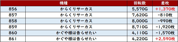 12台中10台が回転数8,200Gを超えており、差枚数+5,330枚を筆頭に優秀な出玉感となった!