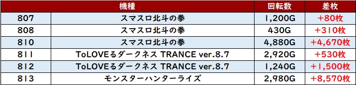 差枚数+4,700枚以上の出玉感が続出し、朝から人気を博したのも納得の状況であった。