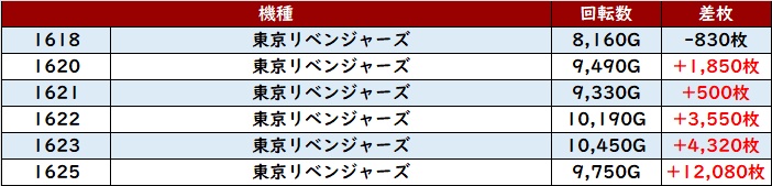 まずは「東京リベンジャーズ 1618~1625、1627~1633」が新台らしく終日大熱狂!
