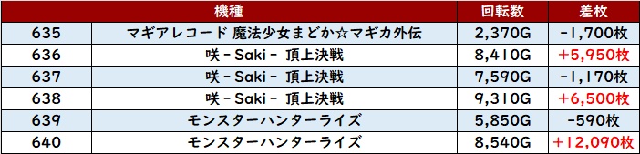 まずは「マギレコ~モンハンライズ 635~640」が凄まじい稼働状況を伴って大盛況に!