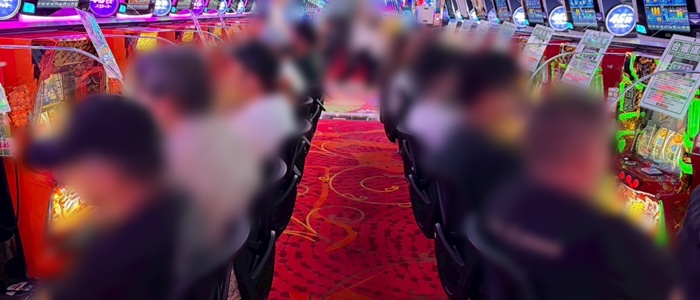 朝イチは「東京喰種」「モンキー5」「東京リベンジャーズ」「スマスロゴッドイーター」の順で埋まり、スロットコーナーはほぼ満台となった。
