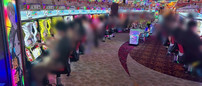 朝イチは「モンキー5」「スマスロ吉宗」「マギレコ」「ヴヴヴ」「からくりサーカス」「スマスロ北斗」「東京リベンジャーズ」「東京喰種」「モンハンライズ」「ダリフラ」「転剣」「ToLOVEる」「スマスロゴッドイーター」「スーパーブラックジャック」「かぐや様」「ガンダムSEED」等から埋まり、全体では7割ほどの稼働となった。