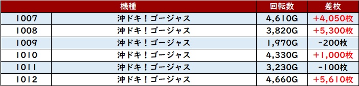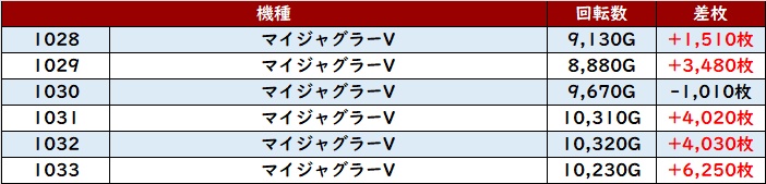 更に「マイジャグ5 1028~1033」の半数が回転数1万G超えと圧巻の稼働状況に!