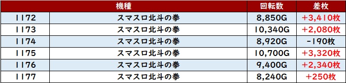 特に「東京喰種 1112~1117」については全台差枚数+2,000枚超えの素晴らしい出玉感で、存在感を示していた!