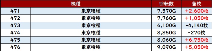 続いて「東京喰種 471~476」は素晴らしい出玉感で盛り上がりに貢献!