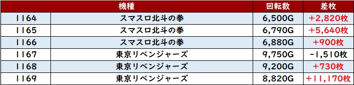 続いて「スマスロ北斗~東京リベンジャーズ 1164~1169」と2機種を跨いで大盛況に!