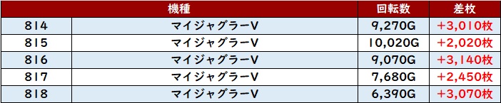 更に「マイジャグ5 814~818」が状況の良さを活かした結果に!