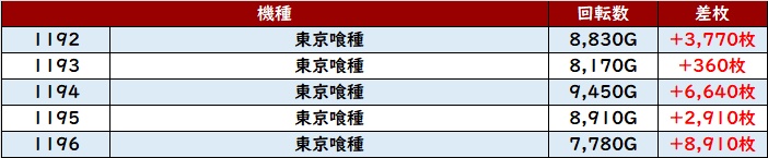 回転数8,000G超えの高稼働に加え、全台大幅プラス差枚と素晴らしい結果を叩き出していた!