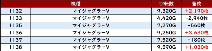 合計12台中11台がプラス差枚となり、全台回転数7,000G越えと状況の良さを物語っていた!