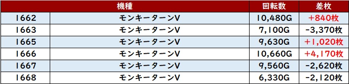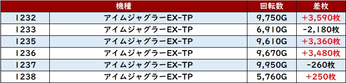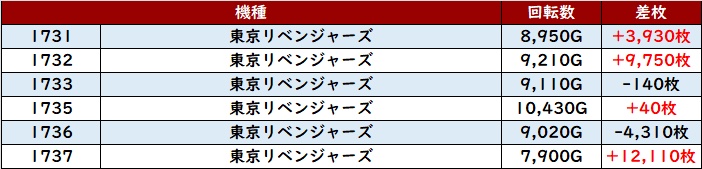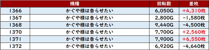 半数以上が回転数8,900G超えとぶん回されており、中には差枚数+1.2万枚超えの台も確認できた!