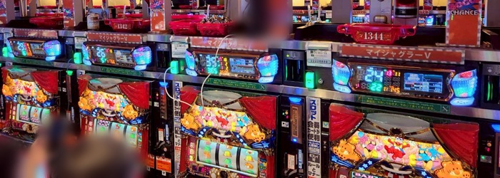 朝イチは新台や「マイジャグ5」が満台、その後「スマスロ北斗」「モンキー5」などに流れた。