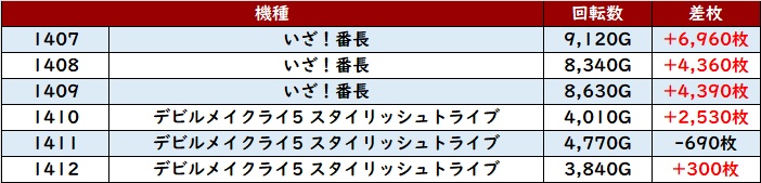 更に「いざ番~DMC5ST 1407~1412」が機種を跨いで好調!