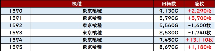 まずは「東京喰種 1590~1595」が人気機種らしい賑わいに!