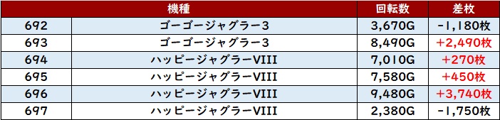 殆どが回転数8,000G超えの稼働となっており、打ち込んでいたユーザー達も優秀な状況を感じ取っていたことに違いないだろう。