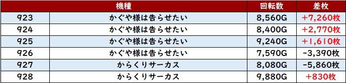 また「かぐや様~からくりサーカス 923~928」が機種跨ぎで好調さをアピール!