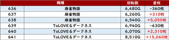 続いて「スマスロ麻雀物語~ToLOVEる 636~641」が機種跨ぎで盛況に!
