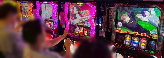 朝イチは「東京リベンジャーズ」「東京喰種」「スマスロ北斗」「チバリヨ2」「ハナハナシリーズ」「マギレコ」「かぐや様」「モンキー5」「スマスロ吉宗」「エヴァ約束」「防振り」「ToLOVEる」「スマスロゴッドイーター」「スーパーブラックジャック」「シャーマンキング」等が埋まっていた。