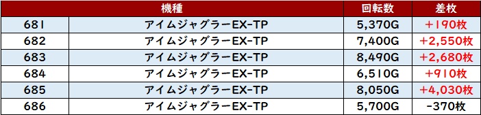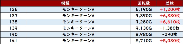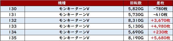 回転数9,000G超えの台も多く見受けられ、熱気そのままに差枚数+5,000枚超えは4台にものぼった!