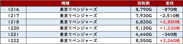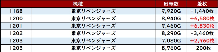 朝イチは「東京リベンジャーズ」「東京喰種」「ハナハナシリーズ」「マギレコ」「いざ番」の順で埋まった。