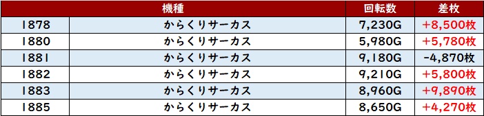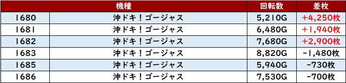 なんと6台中5台が差枚数+4,200枚超えとインパクトのある出玉感を叩き出し、ポテンシャルの高さを周囲に見せつけた!