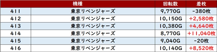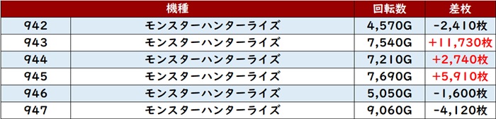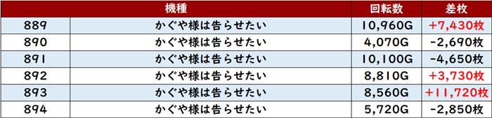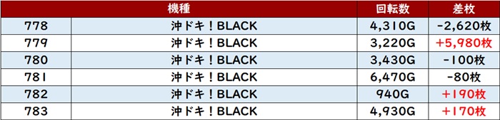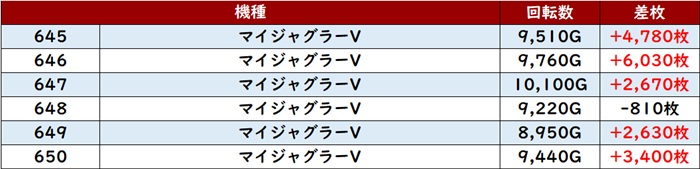 その稼働の甲斐あって差枚数+5,700枚超えを獲得する台が殆ど、という凄まじい結果となった。