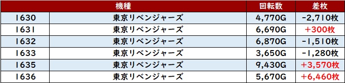 朝イチは「キンハナ」「東京喰種」が満台となり、その他「東京リベンジャーズ」「沖ドキシリーズ」が人気となった。