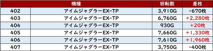 朝イチは「ヴヴヴ」「東京喰種」「モンキー5」「ダリフラ」「モンハンライズ」が満台、「マイジャグ5」「アイムEX-TP」「からくりサーカス」「スマスロゴッドイーター」「スマスロ吉宗」が高稼働スタートとなった。