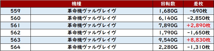 また「ヴヴヴ 559~564」を筆頭に「ヴヴヴ」が複数箇所で奮闘するも、少々物足りない結果に。