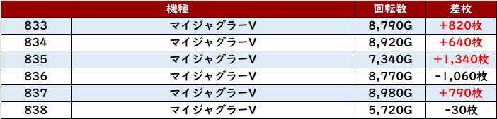 まずは「マイジャグ5 809~814、833~838」と2箇所で好調に!