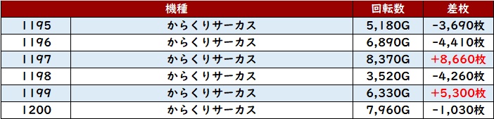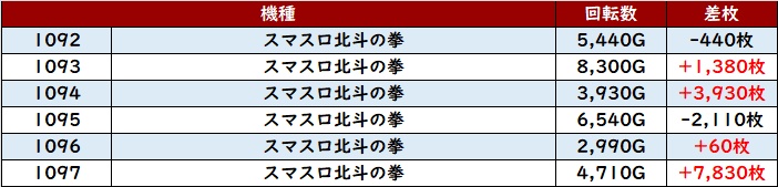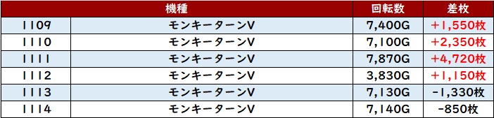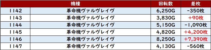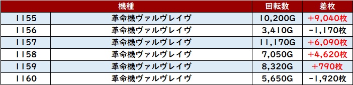 6台中4台が大幅プラス差枚となり差枚数+7,900枚以上の台も複数見られ、ユーザーの高い期待感にしっかりと結果で応えた。
